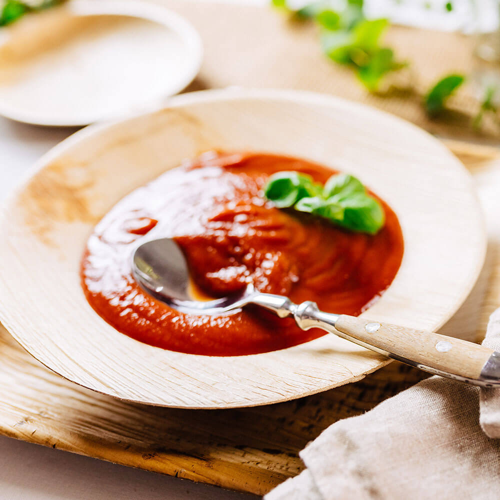 Les assiettes en feuilles de palmier sont une façon naturelle de présenter les produits sur la table.