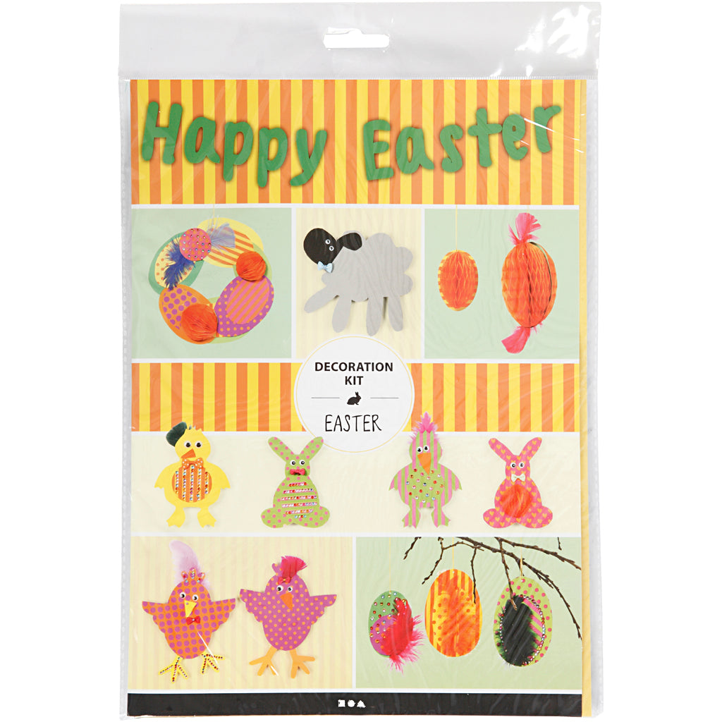 Paquet contenant du papier cartonné, des feuilles à motifs et de la ficelle pour la réalisation de décorations de Pâques.