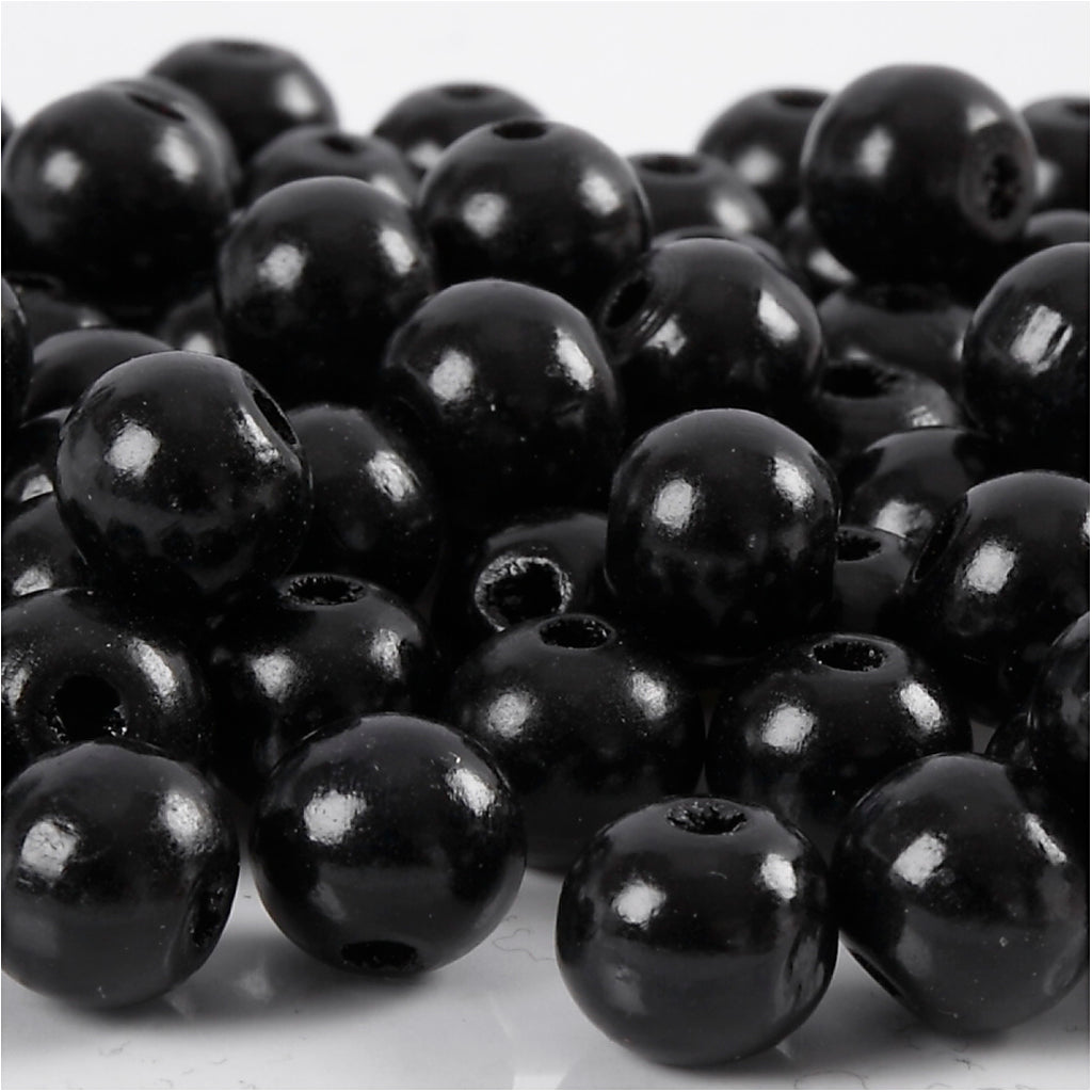 Perles en bois, d 12 mm, diamètre intérieur 3 mm, noir, 22gr/ 1 Pq. [HOB-570415]