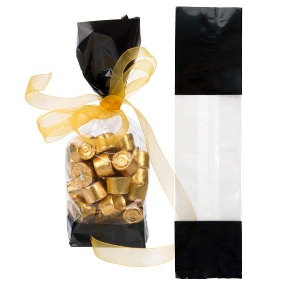 Les friandises et gateaux sont faits pour ce sachet imprimé. Le sachet a des dimensions extérieures de 6.7 x 4.8 x 27.3 cm et a un imprimé transparent avec extrémités noires. Ce nouveau look est un excellent choix pour emballer des chocolats. Le sac laminé est fait de matériaux transparents. Ce sac est thermoscellable et peut être en contact direct avec les aliments. Les côtés extensibles font de la place pour les prdouits volumineux. Les sachets imprimés sont bien pour les accesoires, les rubans, les fruits secs, pop-corn, confiseries...Pour une fermeture plus sûre, ce sac peut être thermosoudé avec un scellant á main.