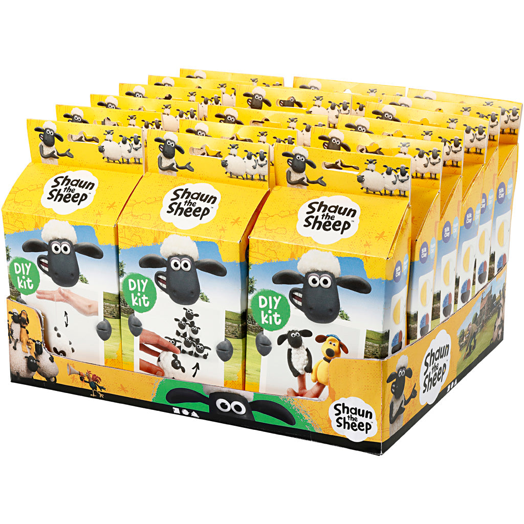 Sets de matériel pour le modelage de marionnettes à doigts, jeu de quilles et yoyo en pâtes Silk Clay® et Foam Clay®. Toutes les figurines sont des personnages de 'Shaun le Mouton'. Instr. incl. dans chaque paquet.