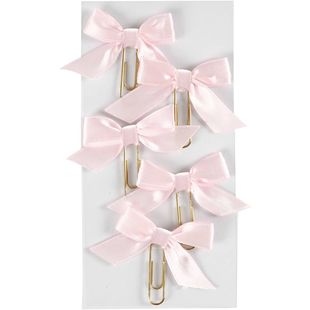 Metalen paperclips met strik van satijnlint. Wordt gebruikt als decoratie en detail op kaarten, uitnodigingen, cadeaus, scrapbooking, planners en nog veel meer
