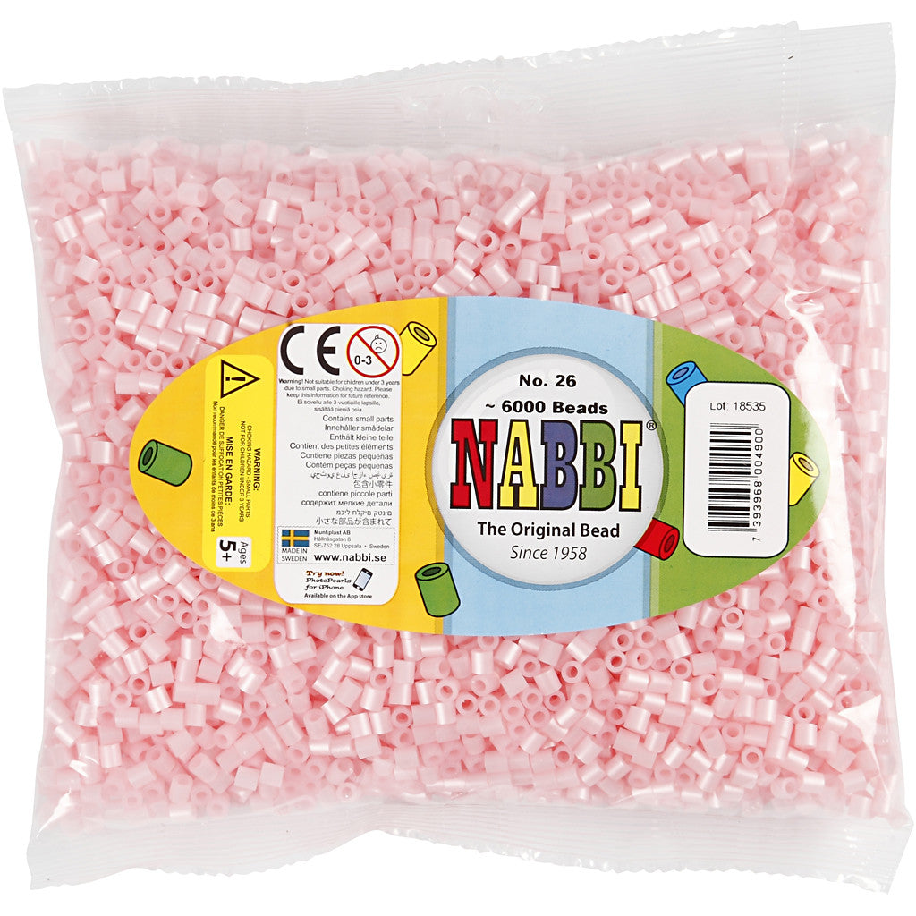 Strijkkralen, afm 5x5 mm, gatgrootte 2,5 mm, medium, roze parelmoer (32259), 6000 stuk/ 1 doos [HOB-751261]