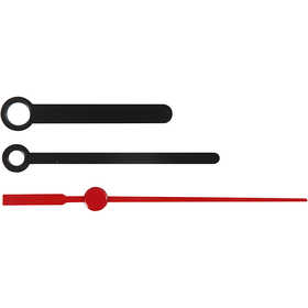 Kleine wijzer is 4 cm lang, grote wijzer is 5.5 cm. Secondewijzer is 7.5 cm lang