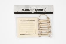 Gedetailleerde toegang tot de zolder van licht hout en een touwladder